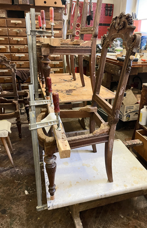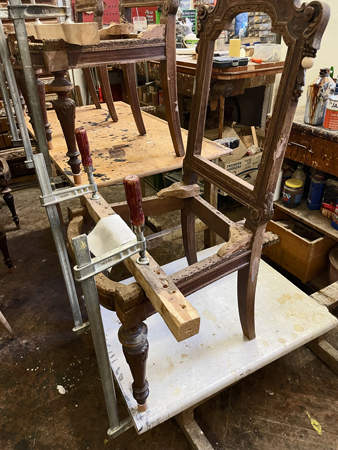 Stühle zerlegt, neu verleimt.
